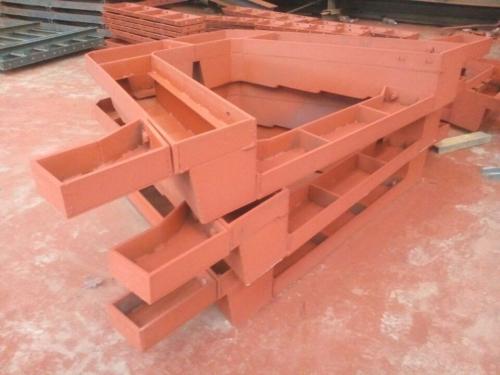 在组装焊接时,应有防止模板变形的可靠措施。板面拼缝要尽量设置在纵肋骨架上,要严密平整,不得有错槎。各部位的焊接要牢固,不得有漏焊、夹渣、咬肉和熔穿板面等现象。